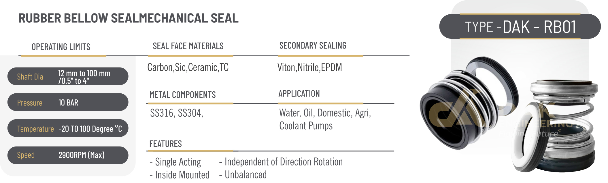 RUBBER BELLOW SEALMECHANICAL SEAL